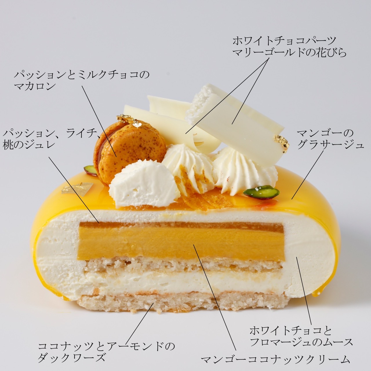 フロマージュムースにマンゴークリームとパッションライチジュレ、