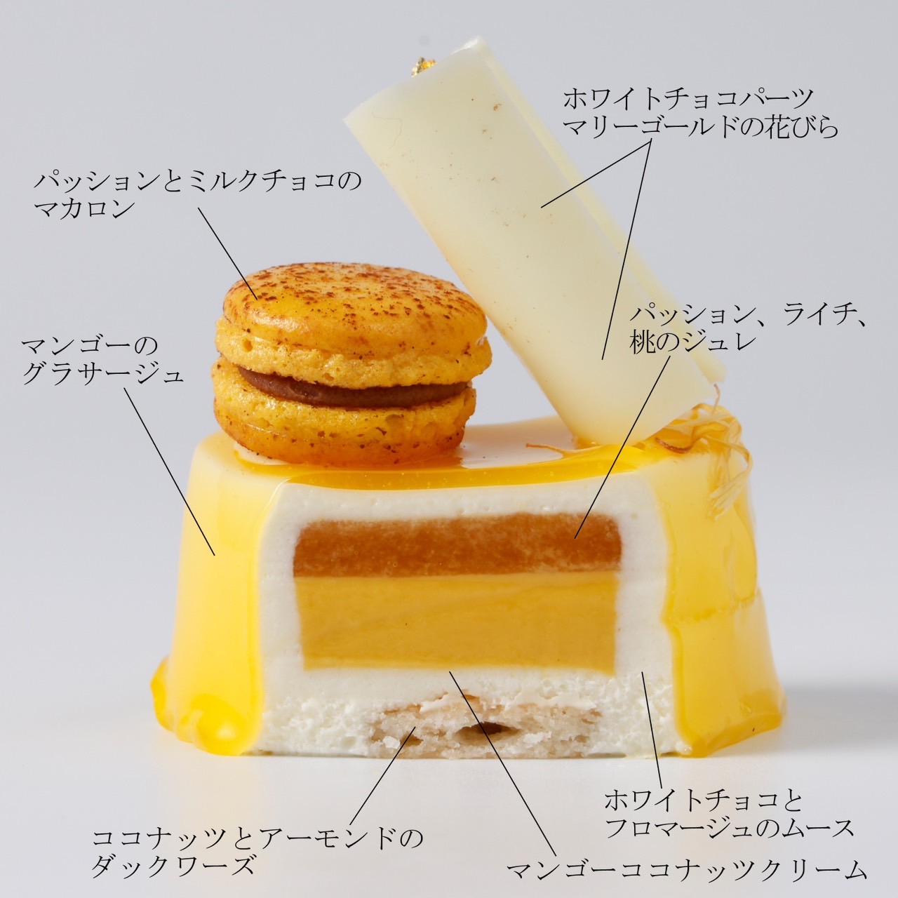 フロマージュムースにマンゴークリームとパッションライチジュレ、