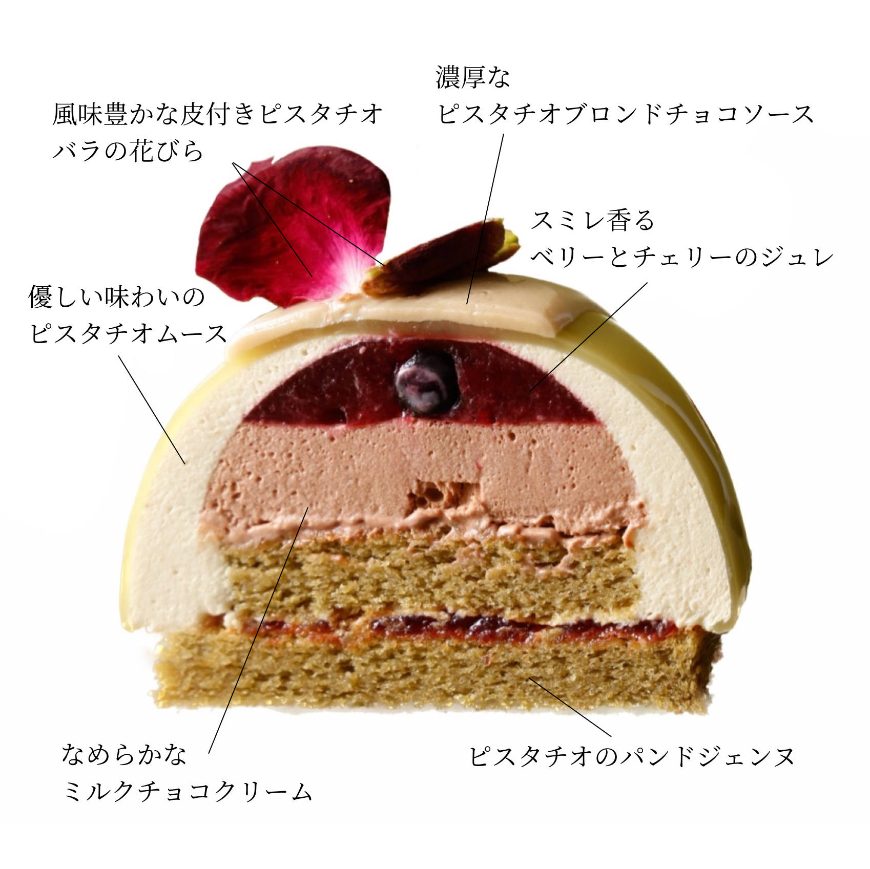 濃厚なピスタチオブロンドチョコソースで仕上げ